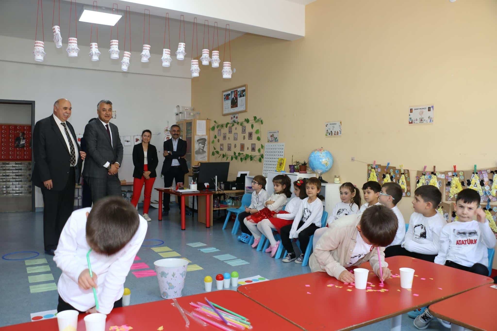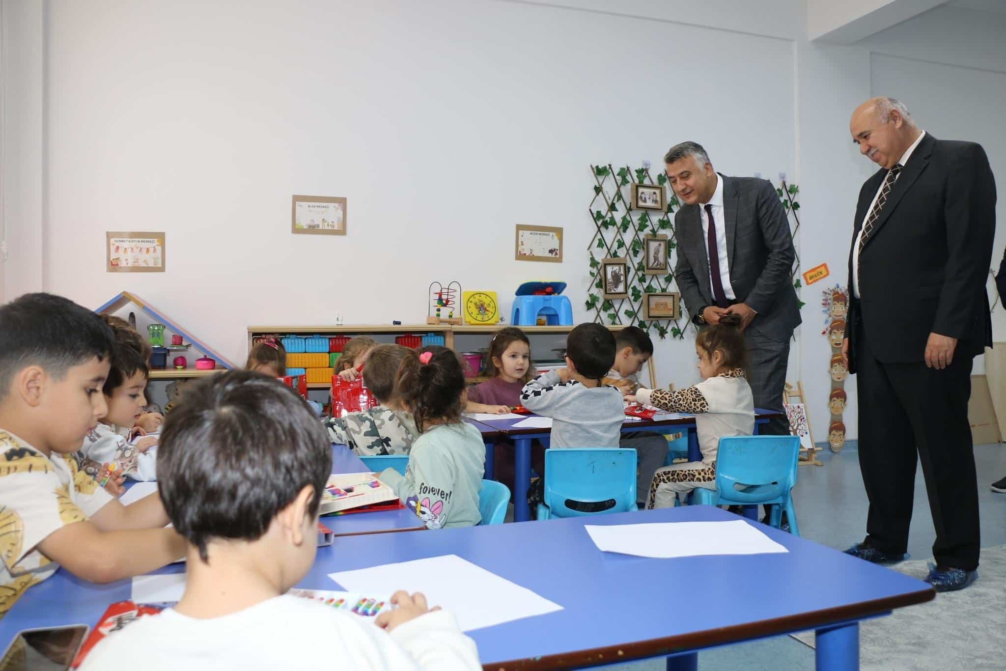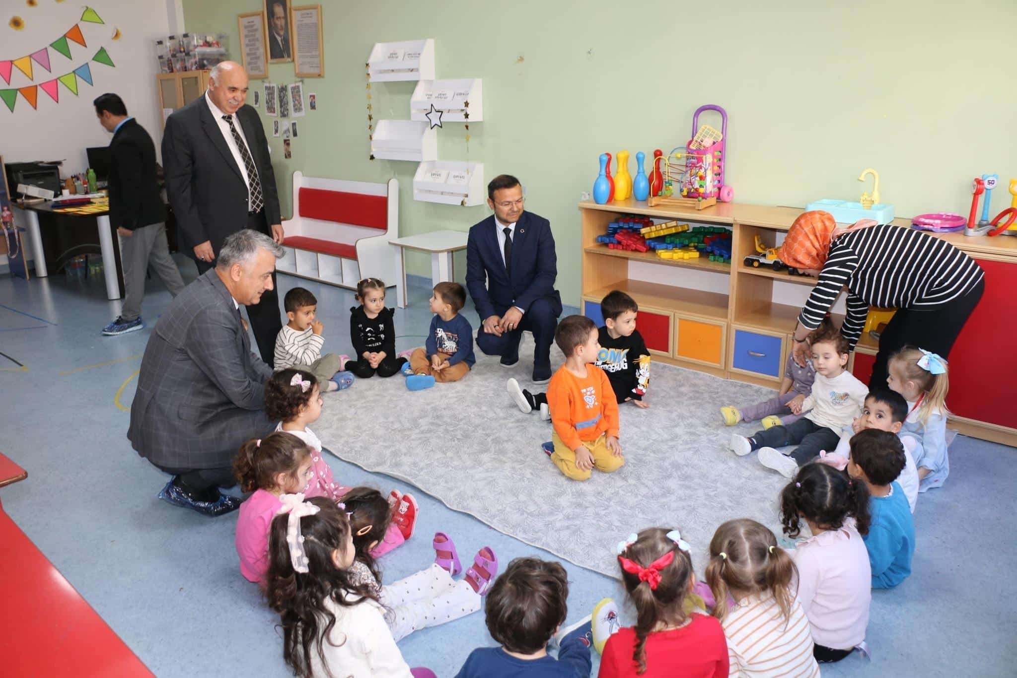 Müdürler, okulun fiziki yapısı, eğitim ortamı ve yürütülen faaliyetler hakkında okul idaresinden bilgi aldıktan sonra sınıfları gezerek öğrencilerle bir araya geldiler. Miniklerin heyecanına ortak olan Katipoğlu ve Gültekin, çocuklarla sohbet etti, onların oyunlarına katılarak keyifli anlar yaşadı.